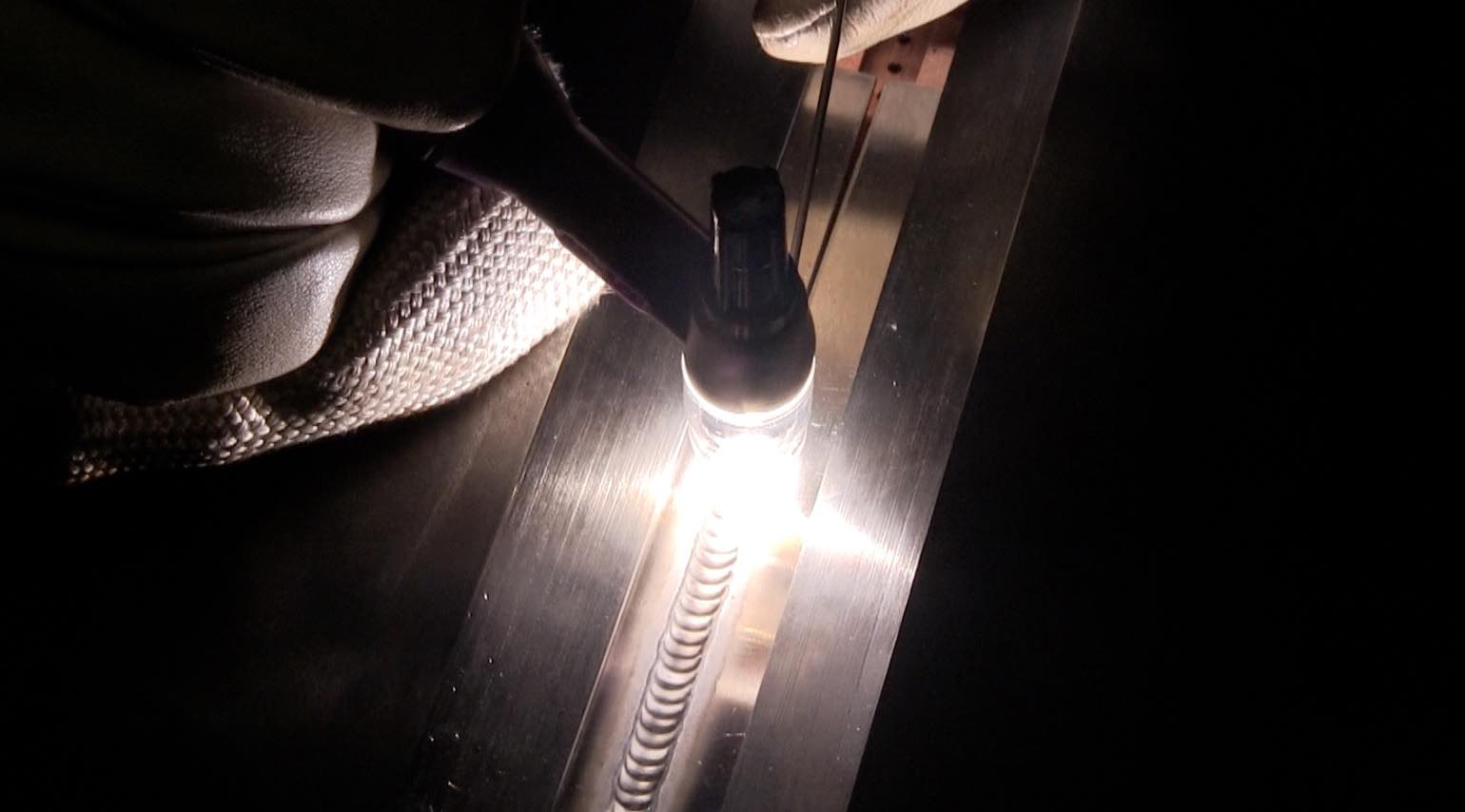 Aerospace welding tests are usually done using a purge fixture that holds the test pieces flat using chill bars while providing argon shielding to the penetration side of the test pieces.