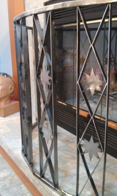 1/8 inch steel bar 3/4 inches wide, 3/4 inch square tube .065 wall thickness. All finished in patina. Welded with miller diversion 165 tig welder