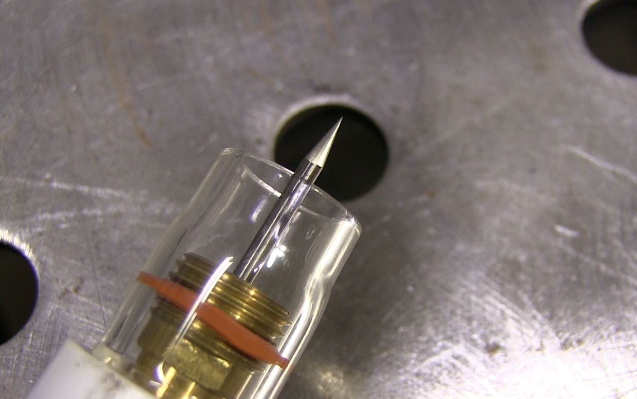 I sharpened the electrode using a diamond grinder but that is not really necessary. I often just use a sanding disc and then polish it with a scotch-brite roloc disc.