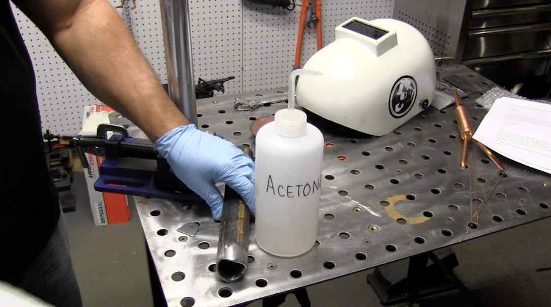 again, for stainless steels and aluminum, sometimes you are pretty much looking at clean bright metal. ( except for a thin oxide film) and all you need is an acetone wipe prior to welding.